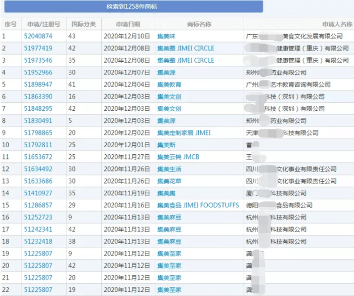 目前关于“集美”商标的申请记录有1258项,大伙儿可先别吃惊为何会有那么多的人注册此类商标。