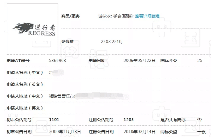小编注意到注册该商标的最早时间是2006年5月22日,国际分类为第25类,其范围包括游泳衣;手套(服装)。