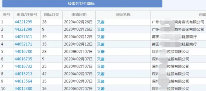 其中第39类“叉酱”商标的服务类别倒是与本意相符合,当然,有的企业甚至也没忘记注册了35类电子商务核心类别。